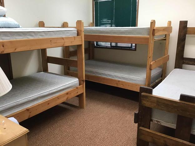Four cozy bedrooms provide sleeping quarters for 22 people (13 lower beds and 9 upper bunks.) Two bathrooms with showers and a laundry room complete the facility.